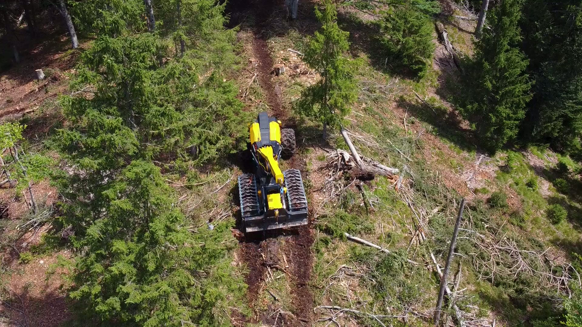 Durch die Eigentraktion der Maschine wird der Waldboden schonend behandelt. Die kompakte Bauweise des Alpenrunners und die starke Leistung sorgt für hohe Manövrierf ähigkeit.